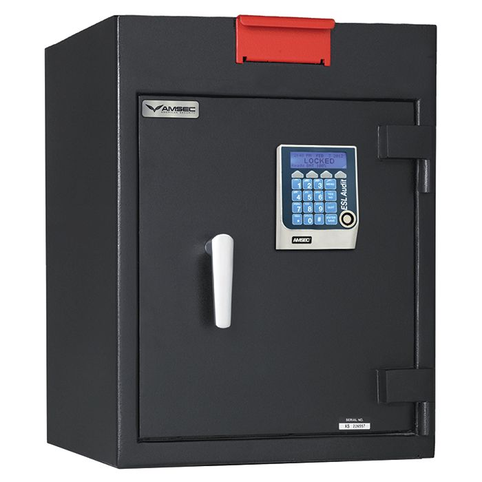 • The Retail MoneyManager Safe is available with either the AMSEC SafeWizard® Electronic lock, AMSEC ESLAudit Electronic Lock or the AMSEC ESL20-XL Electronic Lock.
