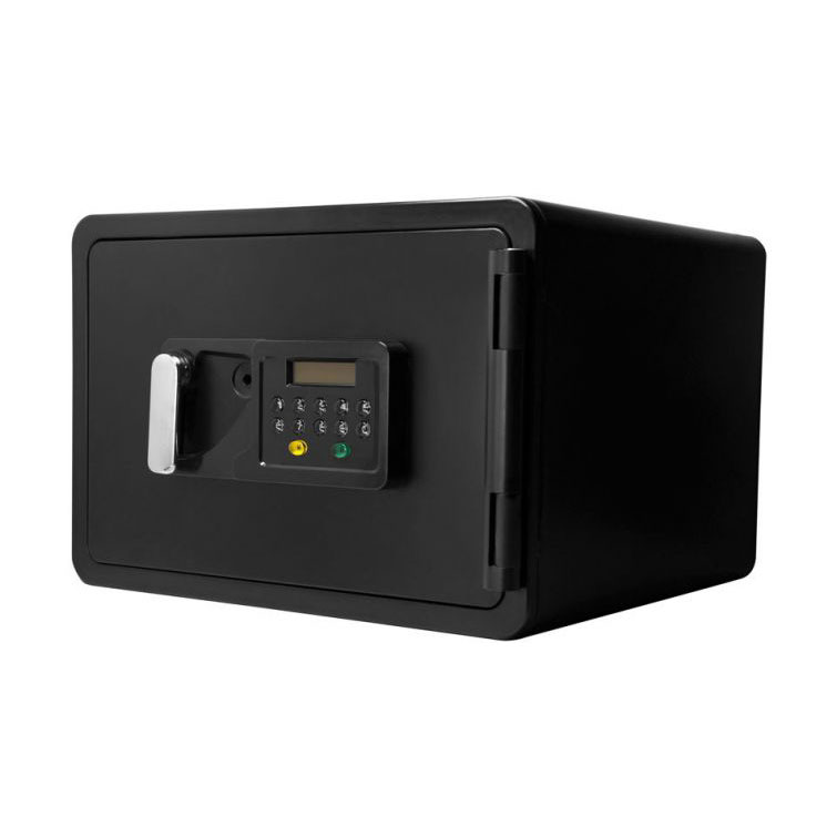 The spacious interior of this safe protects valuables from fire and theft. Store jewelry, passports, documents, cash and more. Features a shelf for storing and organizing items for easy access of items. An emergency override key enables you to open the safe even without entering the combination. Digital entry eliminates the need for making multiple key copies. Easy to operate and program. Larger and More Robust than the competition. Constructed with solid steel to resist hand and mechanical tool attacks. Powder coated interior and exterior. Safe door opens to the right. Constructed of extra thick guage solid steel. Inside tamper-proof hinges.
