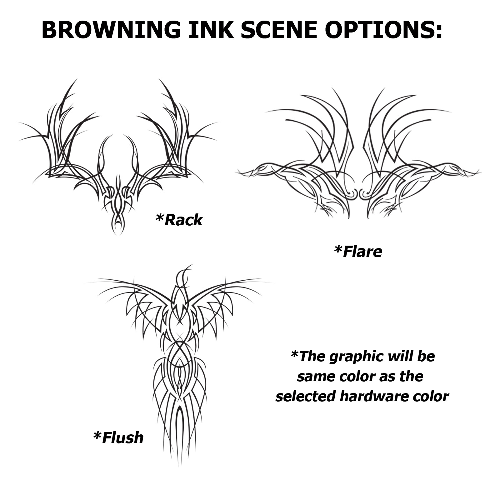 - Scene / Graphics: Raised Metallic Logo, Pinstriping and Silk-Screened Scene