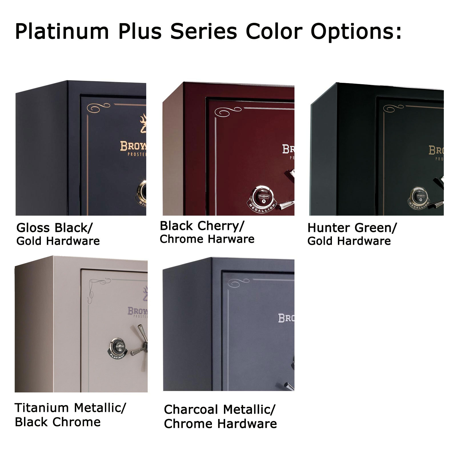The Platinum Plus Series is on the top end of the Browning safes that we carry. It builds onto the success of the madallion series with a wood style interior, 7 Gauge Steel, and an even better fire rating at 120 Minutes at 1750 degrees and 24 Active Bolts. These safes are not to be messed with.