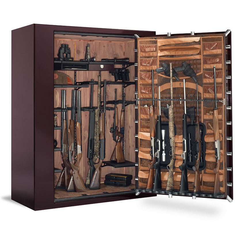 Browning 30″ wide Premium safes feature a single Scope Saver in the door that will fit two scoped long guns. Our Premium safes that are 37″ or wider have two Scope Savers in the door that will fit four scoped long guns.