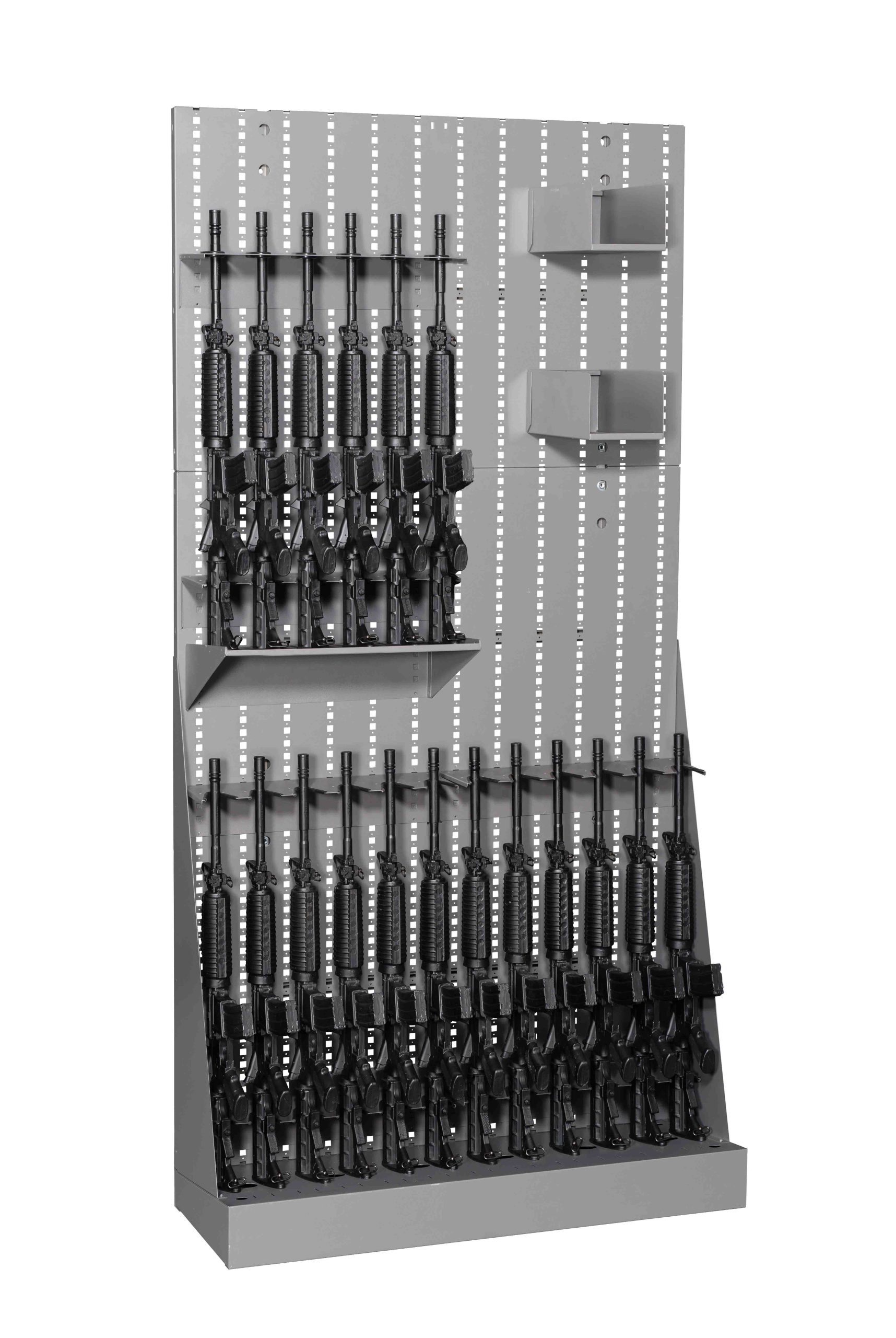 The Argos weapons storage open rack is a universal rack designed for the open storage of firearms and other gear in secured environments, such as controlled vaults or supervised evidence rooms. Like our universal weapon cabinet, the Argos rack can be customized with specially designed components for all types of weapons, ammunition, tactical gear and supplies to make the most of every inch of space. The racks can be wall-mounted or mounted back-to-back with other units, and are fully compatible with our Argos cabinets. They are proudly made in the USA from high-grade steel with a rugged powder coat finish to withstand years of heavy use. Choose from a range of colors to match your existing facilities and furnishings. Keep your arsenal organized, stocked, and ready at all times with a custom rack solution from Argos by Datum.