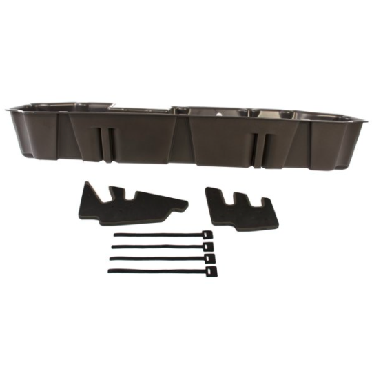 Every DU-HA is custom-designed to fit a particular model of truck. 19-24 Chevrolet/GMC Silverado/Sierra Light Duty Double Cab & 20-24 Heavy Duty Double Cab model is designed to fit underneath your pre-existing back seats. It’s constructed from heavy-duty polyethylene and comes with a lifetime warranty. If your truck comes equipped with a metal tray or a lid system under the back seat, you will need to remove the factory trays prior to installing your DU-HA. These trays are interchangeable, so you will be able to re-install them later if needed. This DU-HA holds 2 rifles or shotguns, with one scope, but may not act as a legal gun case in states with gun case laws, unless guns are first placed in sleeves. Check with your local authorities for gun case laws in your state.