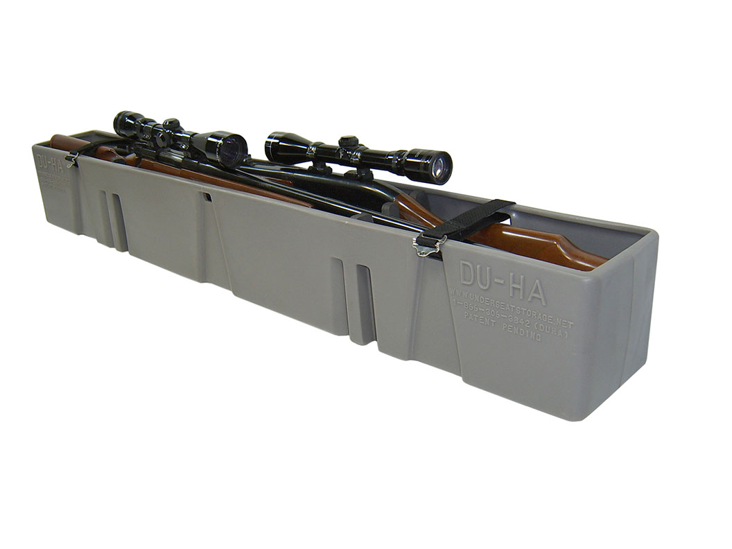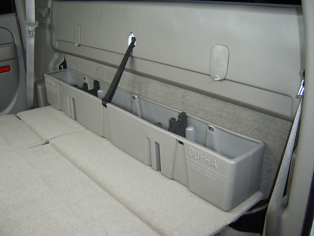 Every DU-HA is custom designed to fit a particular model of truck. The Chevy/GMC Heavy Duty Crew Cab (Classic) DU-HA is designed to fit behind your pre-existing back seat and will not interfere with your seats at all. It’s constructed from heavy duty polyethylene and comes with a lifetime warranty. This model also acts as a legal gun case in most states and will hold 2 rifles or shotguns, both with scopes. Scroll down for more photos and information on this DU-HA.
