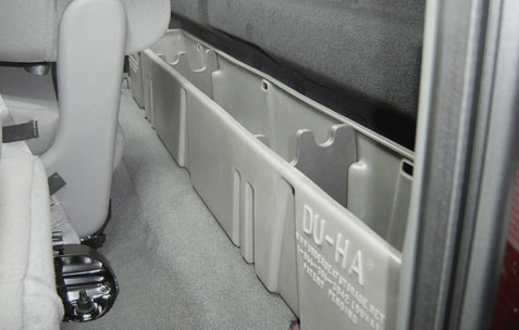 The Ford F-250 thru F-550 Super Duty Regular Cab model is designed to fit behind your pre-existing back seat. It’s constructed from heavy duty polyethylene and comes with a lifetime warranty. This model securely holds up to 2 rifles or shotguns with scopes using the included gun rack inserts.
