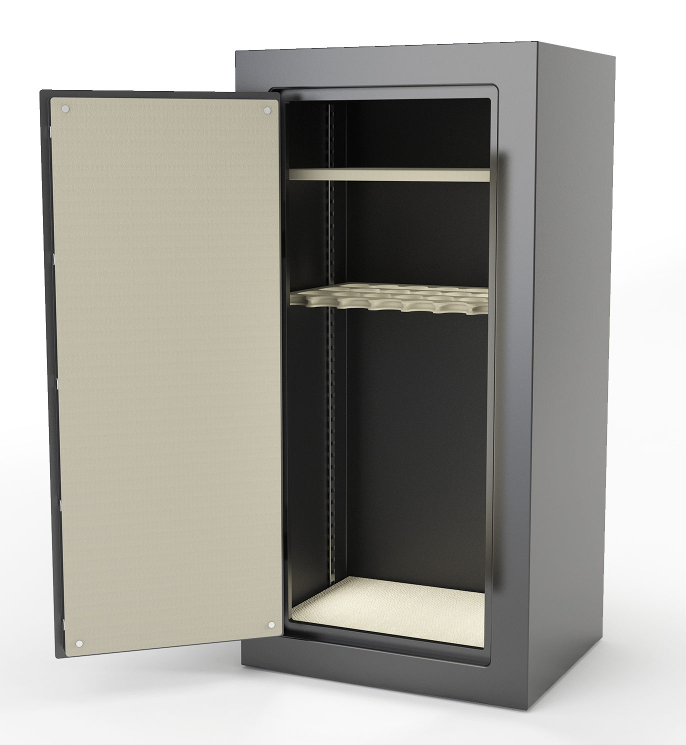 At Edison, we understand that even with the multiple layouts that we provide, everyone may need to customize it even further. That is why we allow the purchase of additional shelving for a low additional cost. This includes the large shelf that is for the top of the unit, a smaller shelf for the bottom sides of the safe, and even a modified long shelf that is able to contain longer rifles such as a black powder rifle.