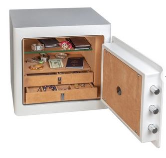 The Gardall JS1718-W-C Jewelry Safe is ideal for safeguarding necklaces, bracelets, rings, earrings, watches, and other valuables. There are two storage and security drawers in this safe. A 5/16″ solid steel plate door, 3 active 1″ locking bolts, 4 anchoring holes (2 in back and 2 in bottom), and a Group II dial combination lock are among the safe’s security features. For an extra fee, a Type I digital electronic lock can be added. As a standard feature, an individual re-locker is available. We strongly advise you to secure this safe to either the floor or the wall for added protection.