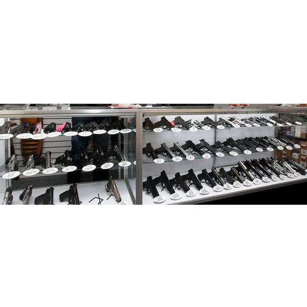Kikstands give a great presentation of your inventory, allow for more guns to be displayed, and are easily accessed by sales associates. When set at an angle, instead of flat on the shelf, more guns are able to fit in the same area. Kikstands will insure that every time the gun is taken out of the cabinet it is returned to the same position.
