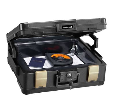 The Honeywell Model 1104 Molded Fire/Water Chest features a storage capacity of .39 cubic feet. Secure unprecedented levels in peace of mind with this chest’s ability to withstand a fire of up to 1700° F for one hour! The addition of a waterproof seal and two side latches guards against emergency sprinklers, floods and various other forms of water damage. These features make it an ideal candidate for stashing all of your personal documents, digital media and various other valuables. The box is also large enough to store your legal sized papers flat. For security measures, this box utilizes a key lock system. A carry handle is also included and adds even more versatility to an already flexible product.