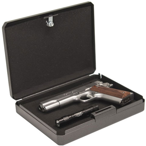 The HD-90 will fit most standard handguns and is perfect for other small valuables. The included Security Cable allows for additional security protection when at home or in an automobile. The compact size allows for easy storage in your desk drawer or under the seat of your car or truck. TSA compatible for airline use.
