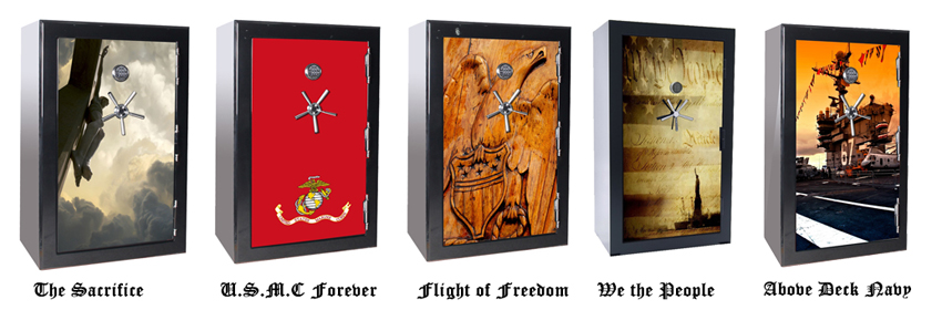 Same great safe but with a door graphic of the United States Constitution, Statue of Liberty and the American Flag.