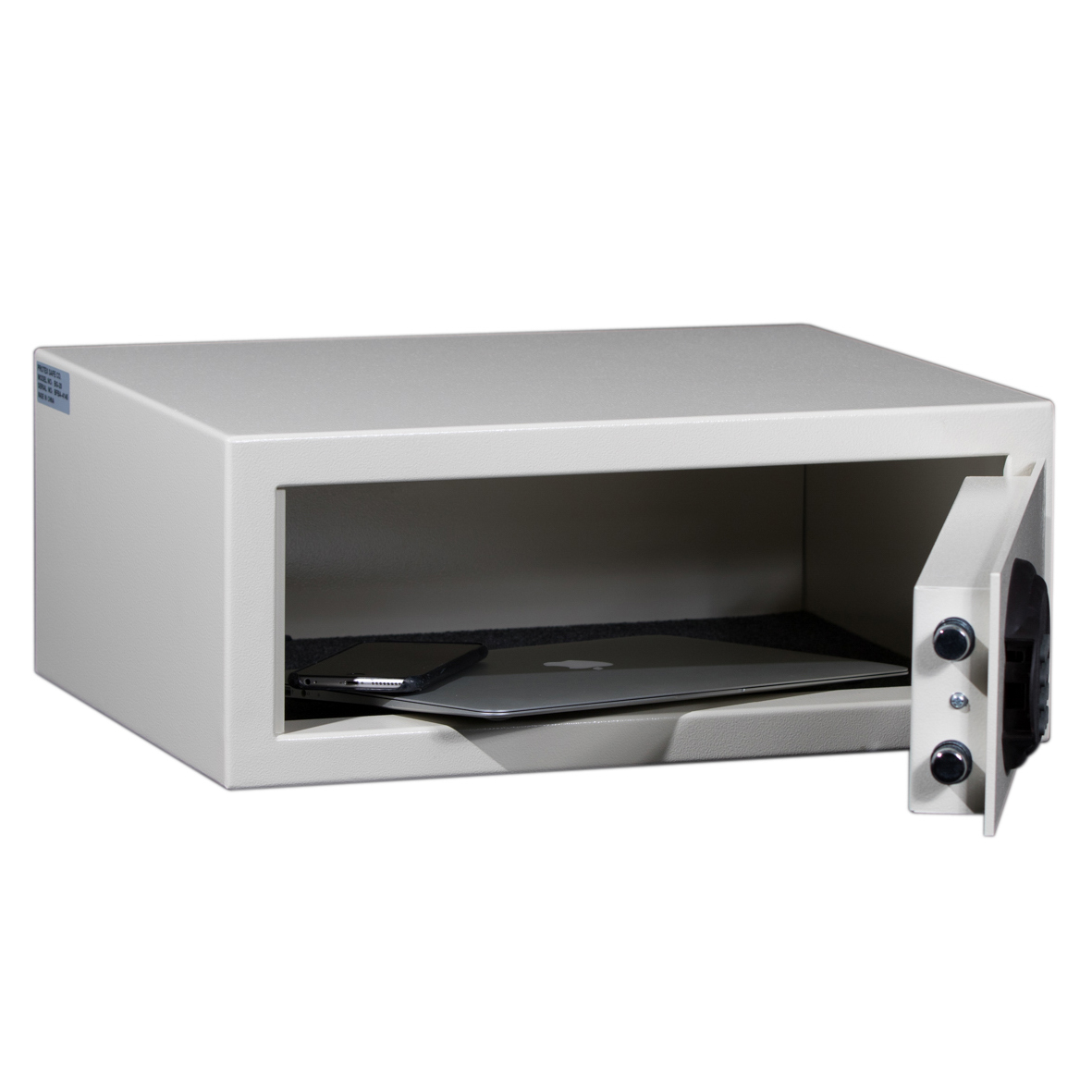 The Protex BG-20 Hotel & Personal Safe is great for personal use at home or office. This safe is also made for laptop sizes. The BG-20 is equipped with a digital keypad for easy operation and maintenance. It is powered by 4 internal AA batteries. The lock allows a 1-6 digit code. It comes with two override keys incase the batteries die or you get locked out of the safe. There are 4 pre-drilled anchor holes on the bottom 1/2″ in diameter and comes complete with bolt down hardware. This Hotel & Personal Safe has concealed hinges for added security and sleek looking appearance.