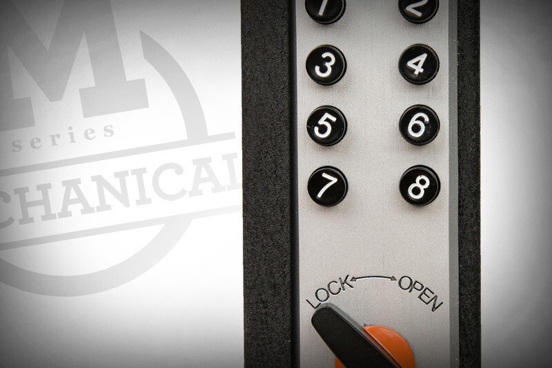 The 200M Series lock is a unique 8 button, all-mechanical, programmable lock. It provides over 1,500 four digit combinations, and includes a key override.