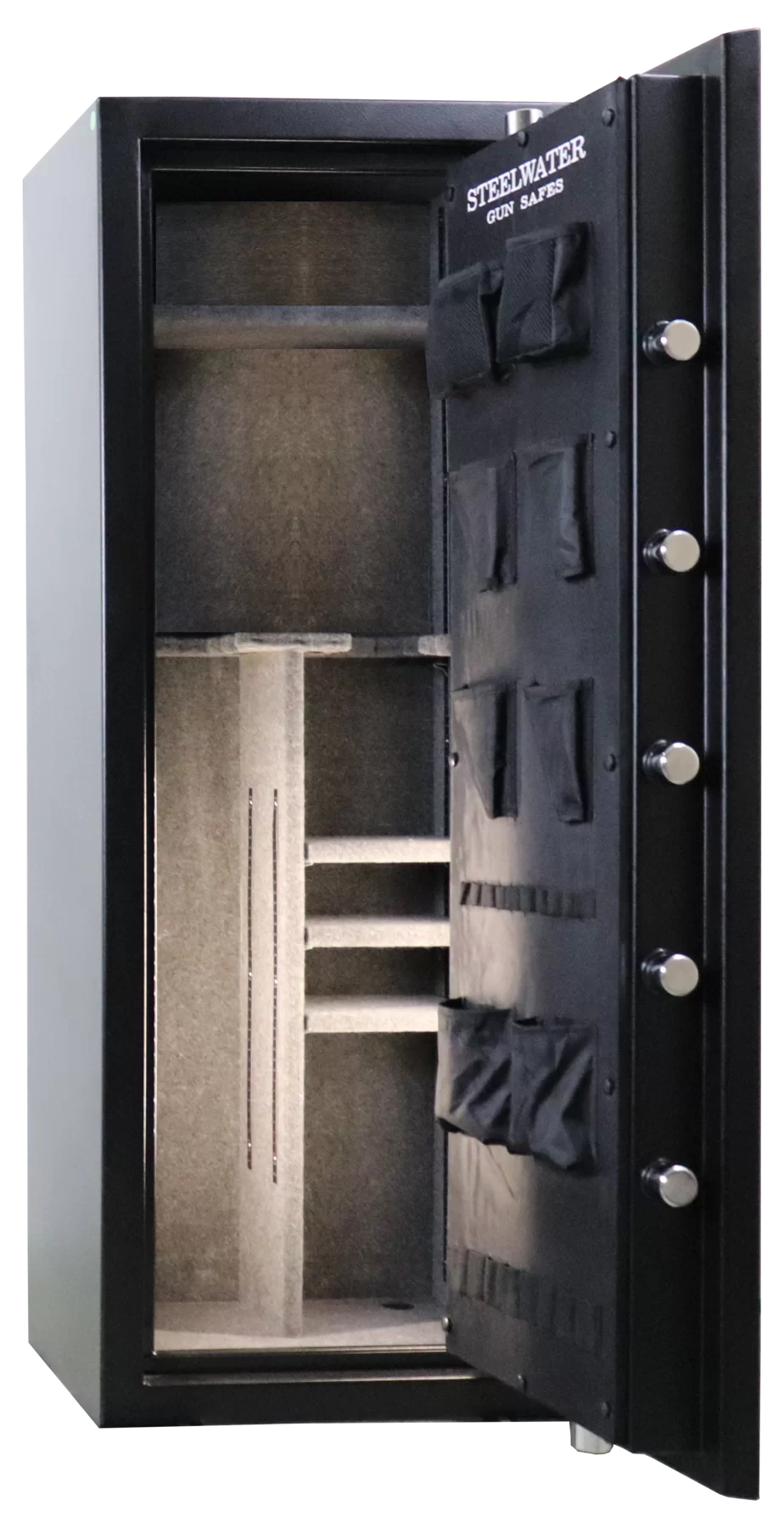All safes purchased through Steelwater Gun Safes are backed by a Full One Year Warranty against all manufacture defects, excluding all electronic components, for a period of one year from date of purchase. All electronic components are warranted for a period of 90 days. Resetting of any combination on a LaGard combination dial must be performed by a qualified licensed locksmith otherwise this warranty will become void. All customers will be required to supply all necessary documents to a Steelwater Gun Safes representative before any repairs or replacement will be approved. At no time will Steelwater Gun Safes approve a repair that exceeds the original purchase price of the safe. Replacement gun safes will be either the same or a comparable model and will include shipping to the original address of purchase. At no time will Steelwater Gun Safes become liable for the cost of installation and/or removal of a gun safe under warranty or any contents or valuables that may be stored inside the safe.
