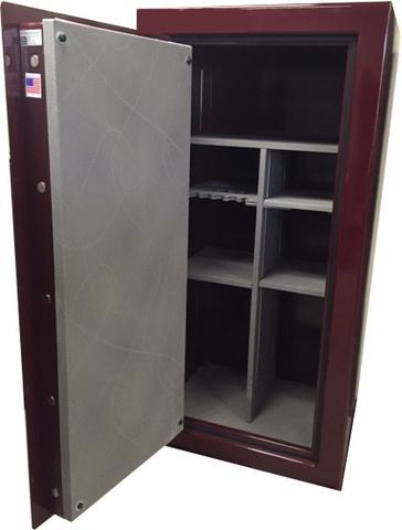 Sun Welding lines the six interior walls with 5/8″ fire board. See our fire ‘Fire Rating’ tab for more information. Then we hand build each interior from solid 3/4″ particle board. It is then finished a velour fabric (variety of colors to choose from). With three standard rifle configurations to choose or a solid collector shelf interior we have the interior for you. We can also custom build an interior made to your specifications. See ‘Interiors’ tab to view our interior options. There are six pre-drilled mounting holes in the bottom of every safe for bolting the safe down to the floor