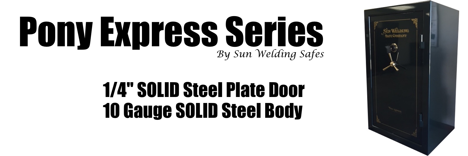 The Pony Express Series is Sun Welding’s signature series. The Pony Express Series is designed as an overall heavy duty safe. Offering a solid 1/4″ steel plate door and 10 gauge steel body. The Pony Express series offers a Group II combination lock or Electronic lock. The lock is protected by a 1/4″ hard plate plus 1/2″ absorption plate, to resist from impact, drilling, or punch attacks. In addition, the independent three way bolt works are protected by two spring loaded re-locking systems which lock the entire bolt works together. The three way bolt works offer five active bolts on the opening side and hinge side of the door and also one top bolt.
