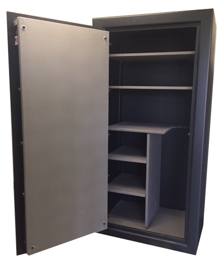 Sun Welding lines the six interior walls with 5/8″ fire board. See our fire ‘Fire Rating’ tab for more information. Then we hand build each interior from solid 3/4″ particle board. It is then finished a velour fabric (variety of colors to choose from). With three standard rifle configurations to choose or a solid collector shelf interior we have the interior for you. We can also custom build an interior made to your specifications. See ‘Interiors’ tab to view our interior options. There are six pre-drilled mounting holes in the bottom of every safe for bolting the safe down to the floor
