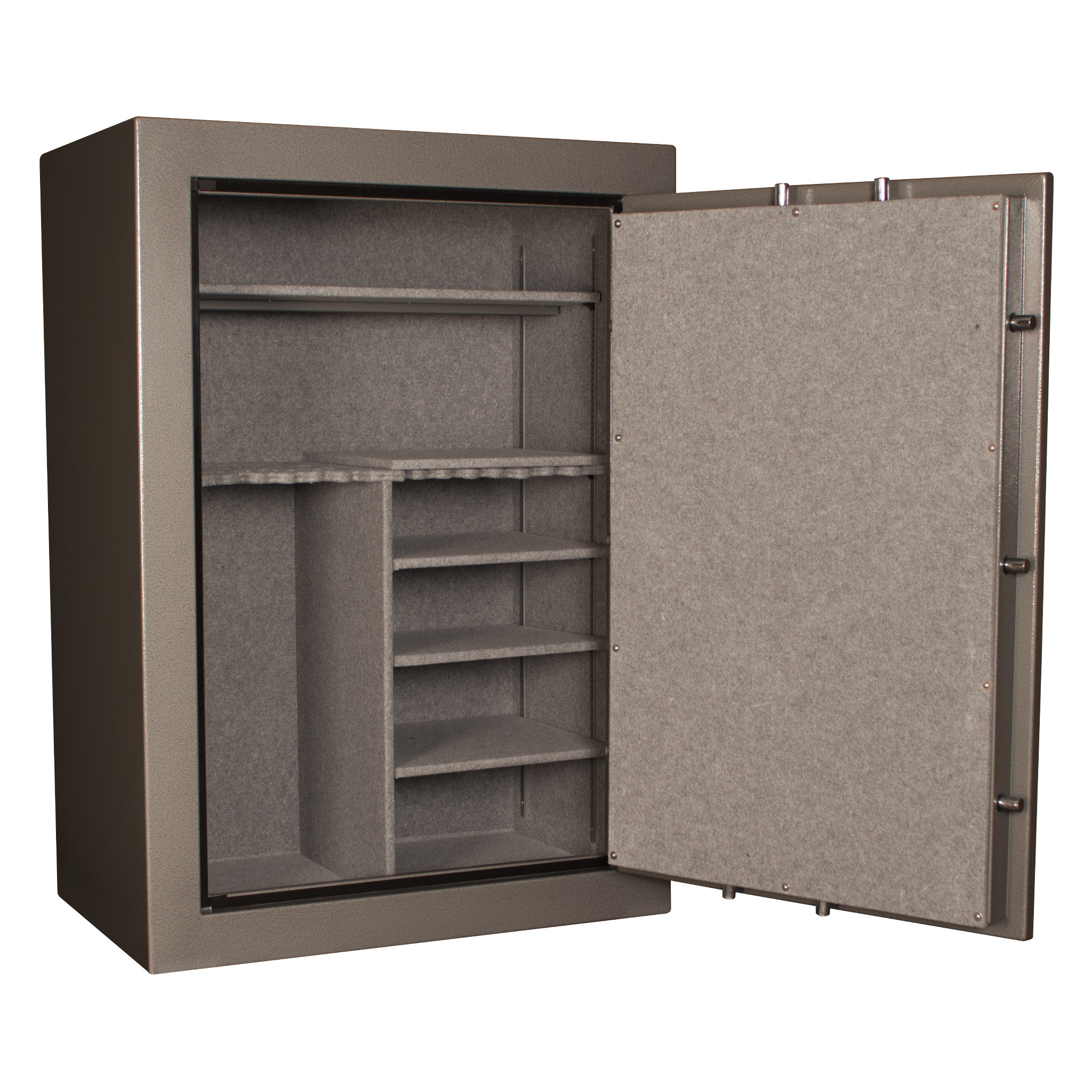 - Attack resistant external hinges that allow the door to open 200 degrees, unlike safes with internal hinges