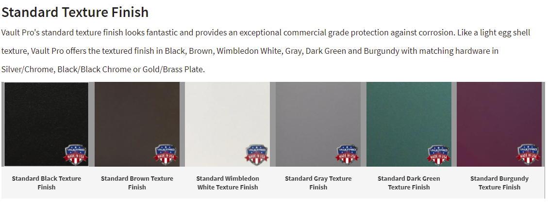 - Standard Texture Colors: Black, Wimbledon White, Brown, Gray, Dark Green and Burgundy – Gloss and Custom Finishes Available